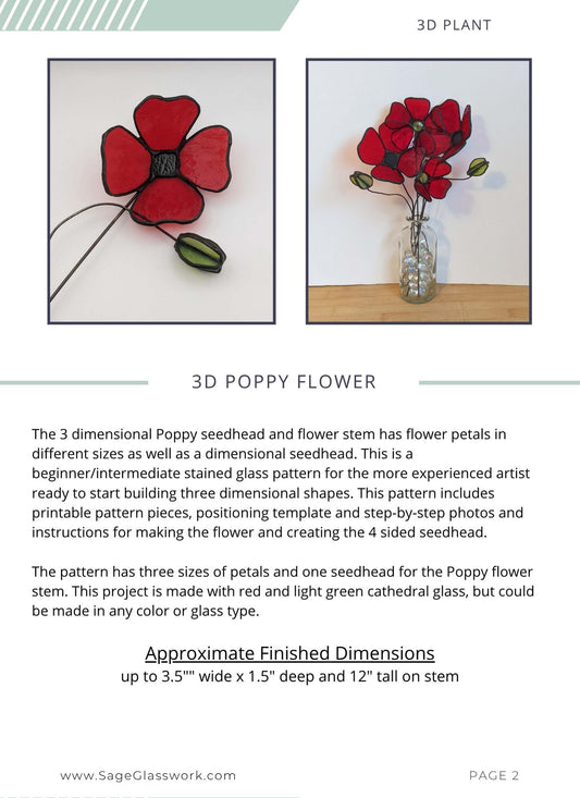 3D Poppy Flower and Seedhead TUTORIAL stained glass pattern