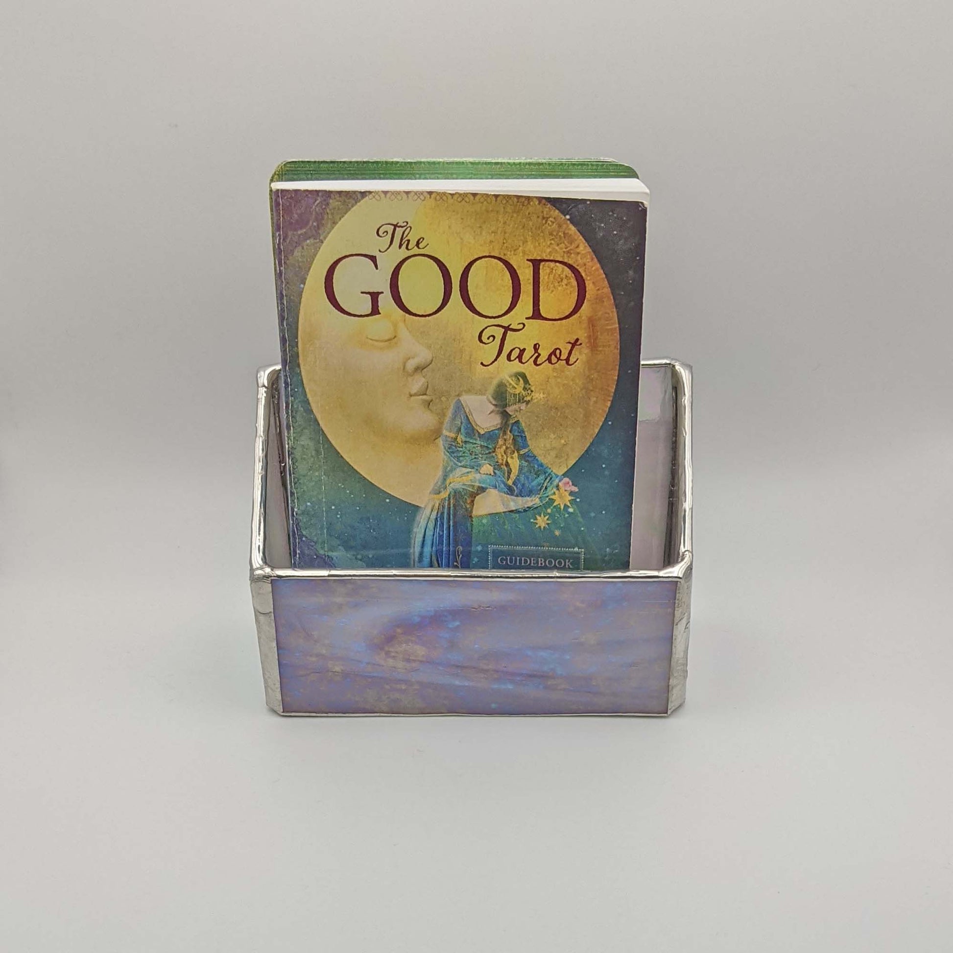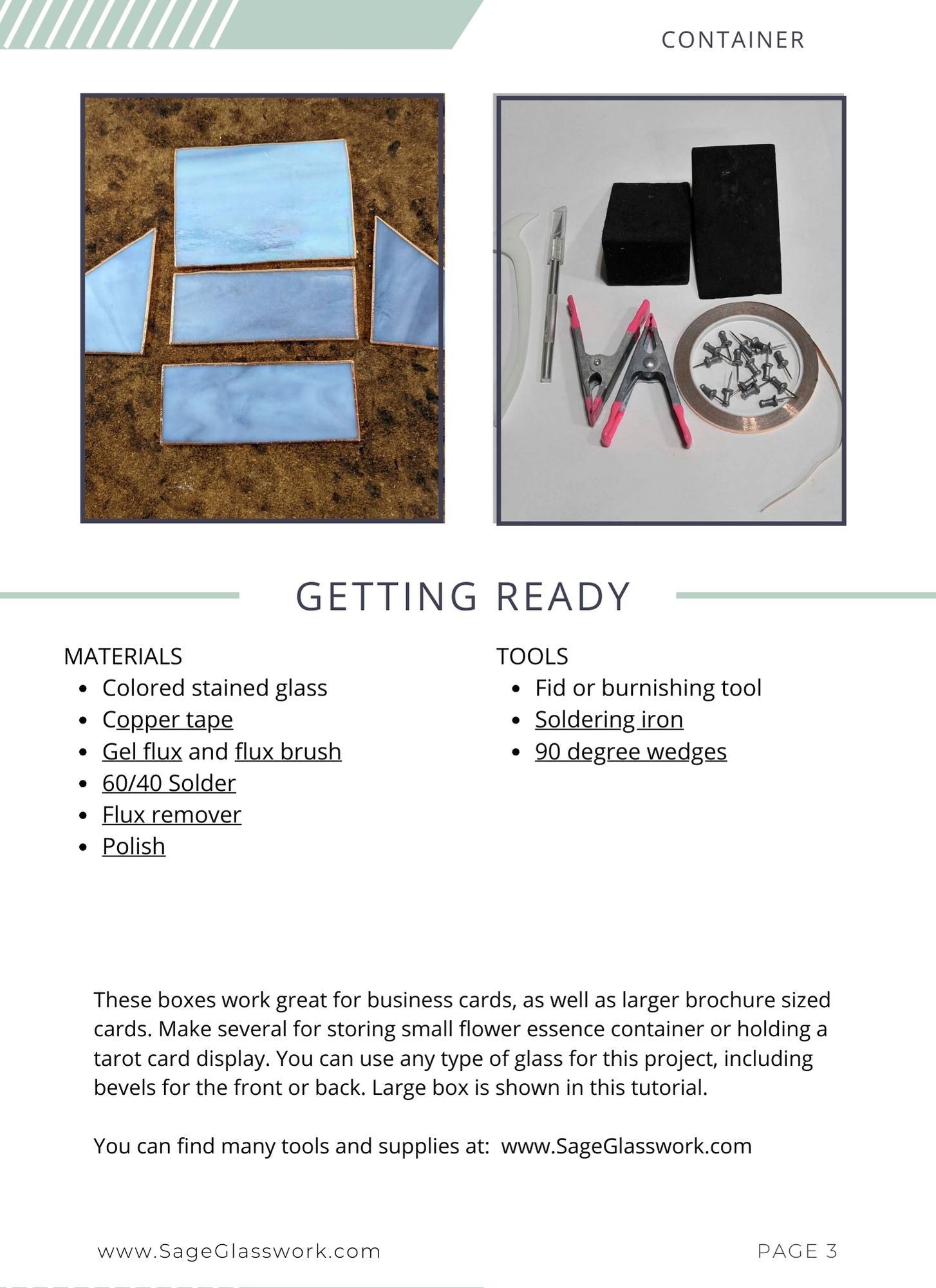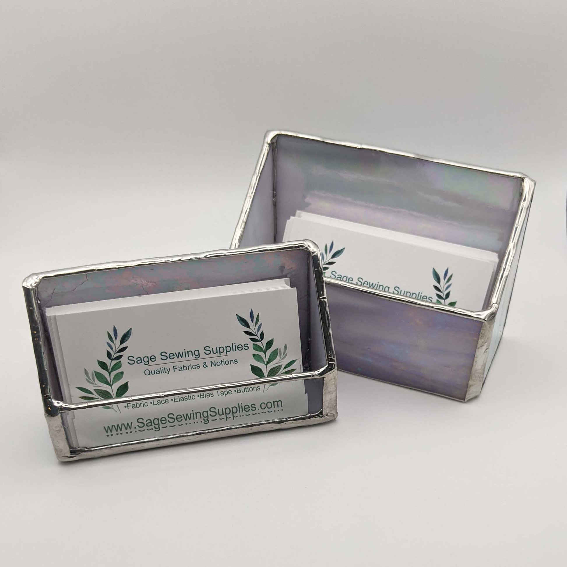 This 3d Business Card Box pattern has all the instructions to make two different sized stained glass organizers. Great for showcasing business cards, tarot cards, even holding small jars or candles. The pattern and tutorial has the cutting/layout template as well as instructions for assembling your 3 dimensional glass art.