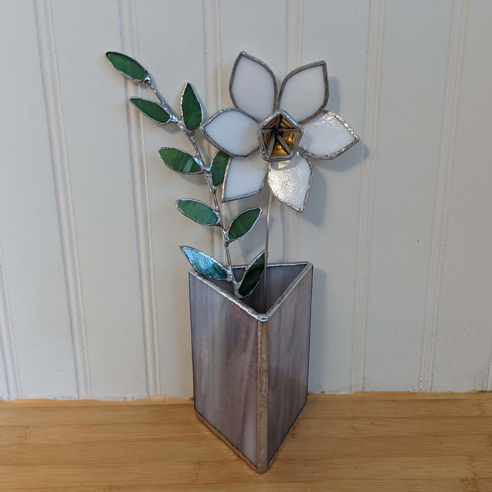 This 3d Triangle Vase pattern has all the instructions to make two different sized stained glass organizers. Great for showcasing flowers, even as a pencil holder. The pattern and tutorial has the cutting/layout template as well as instructions for assembling your 3 dimensional glass art.